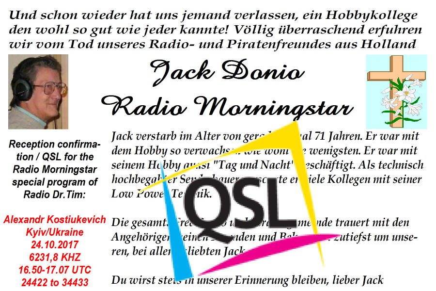 RECEPTION REPORT from ITALIA for Radio Morningstar transmission October 24, 2017